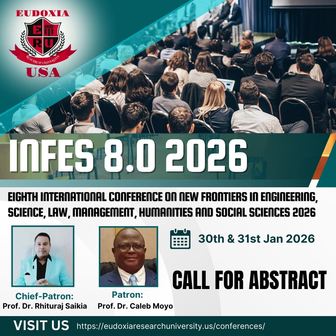 The Eighth International Conference on New Frontiers in Engineering, Science, Law, Management, Humanities, and Social Sciences (INFES 2026) is a pioneering event that celebrates the power of collaboration across diverse disciplines. Organized by Eudoxia Research University, New Castle, USA, in partnership with Dr D. Y. Patil Law College, Pune, Maharashtra, India, and the Eudoxia Research Centre, Bangalore, India, this conference is an unparalleled opportunity for researchers, academicians, and professionals to explore groundbreaking advancements and redefine the future of knowledge.